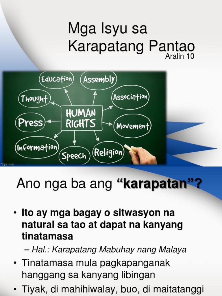 Magbigay ng 10 karapatang pantao with picture. Maisilang at magkaroon ng pangalan at nasyonalidad. Learn vocabulary terms and more with flashcards games and other study tools. Magbigay ng isa or dalawang subpoints para nito.